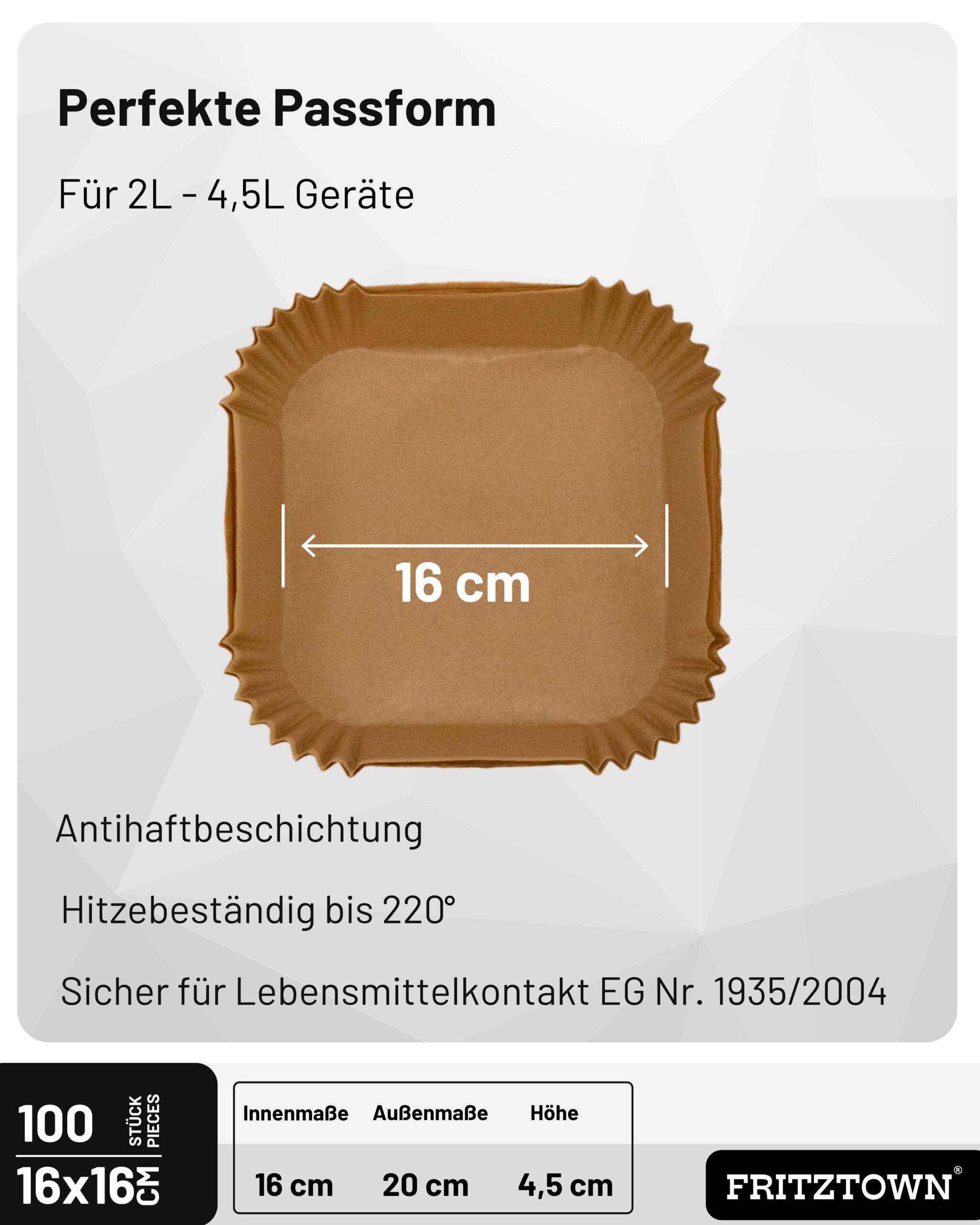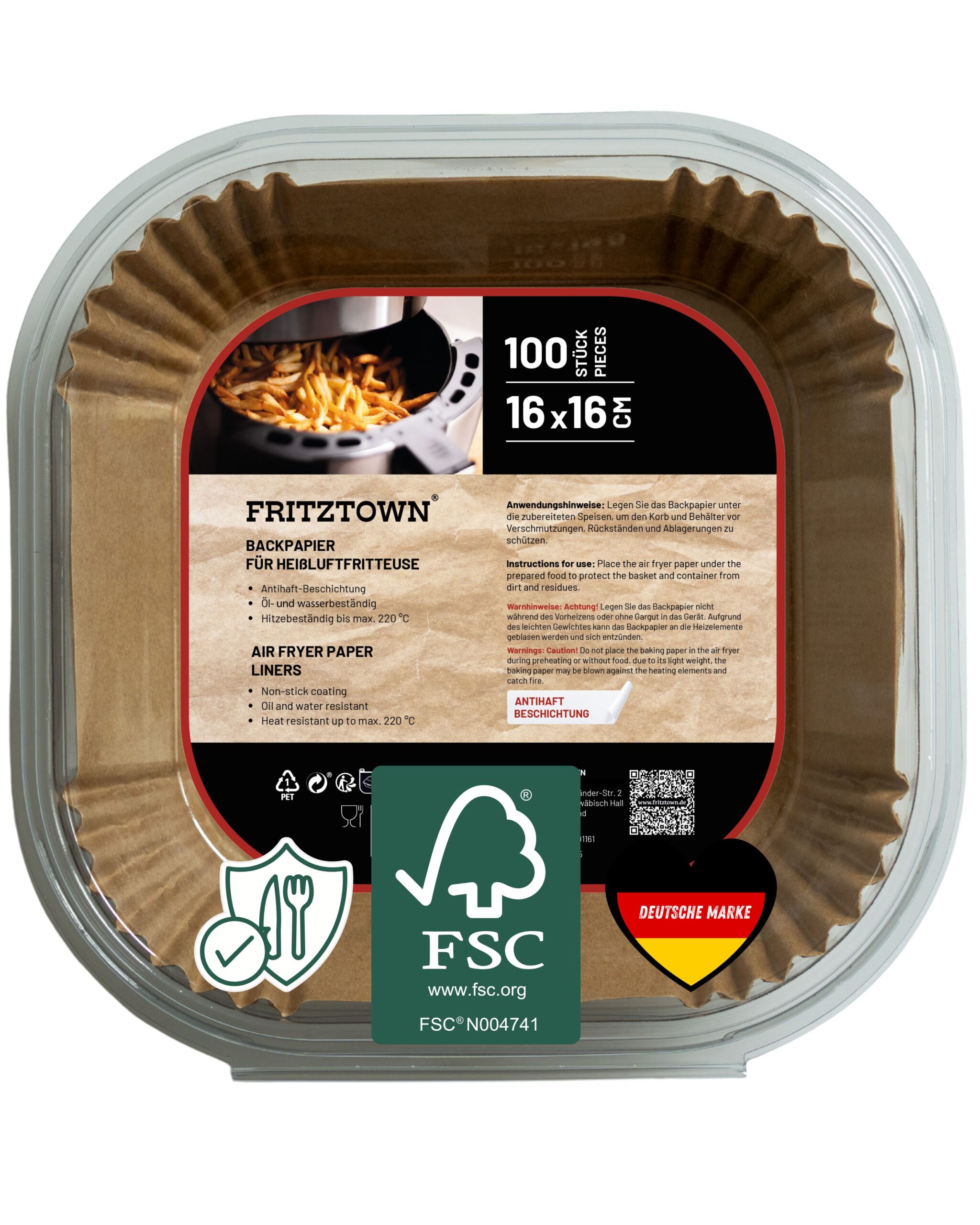 FRITZTOWN® Air Fryer Papier – 100 Stück, 16×16 cm Quadratisch