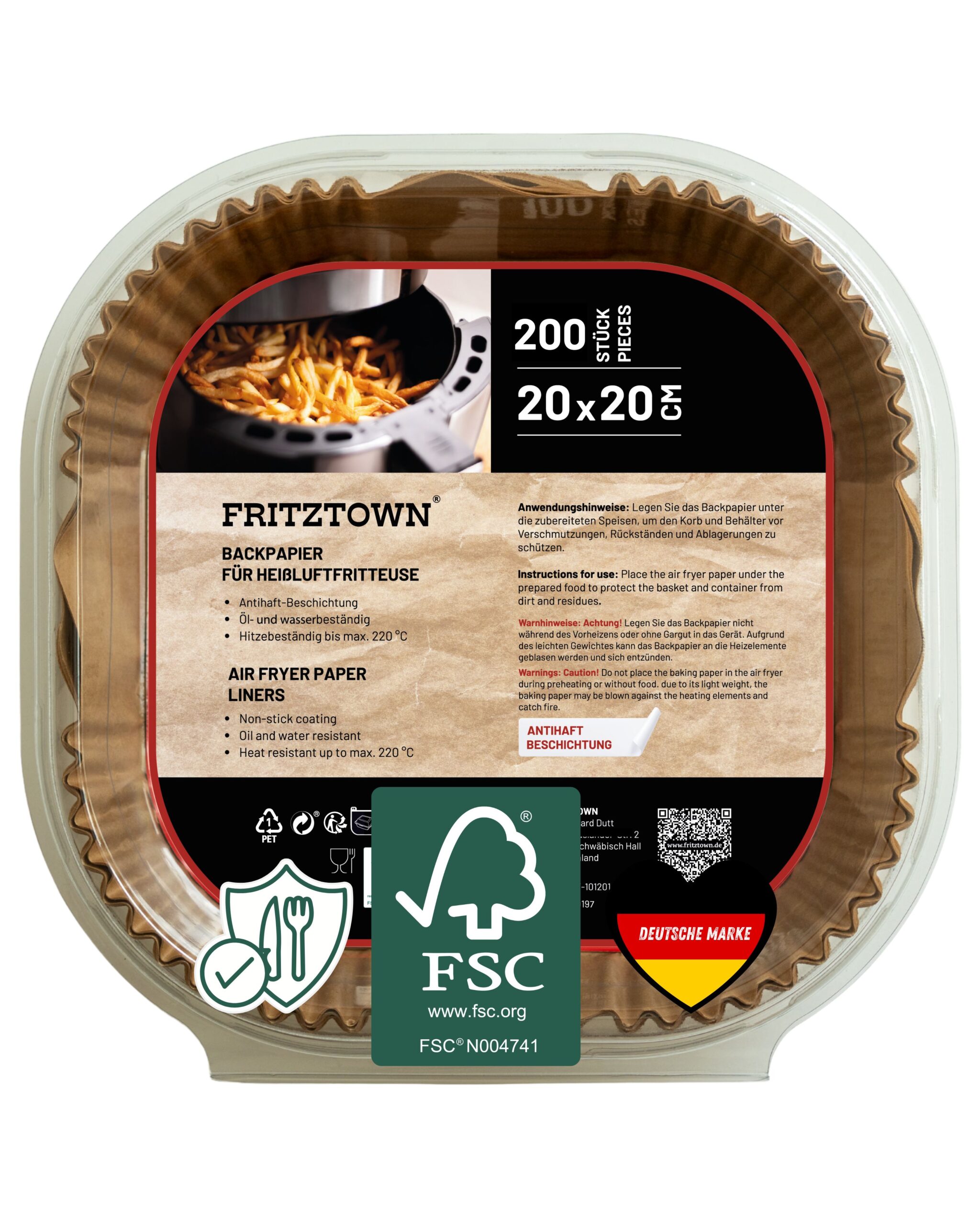 FRITZTOWN® Air Fryer Paper 20x20cm Quadratrisch 200 Stück