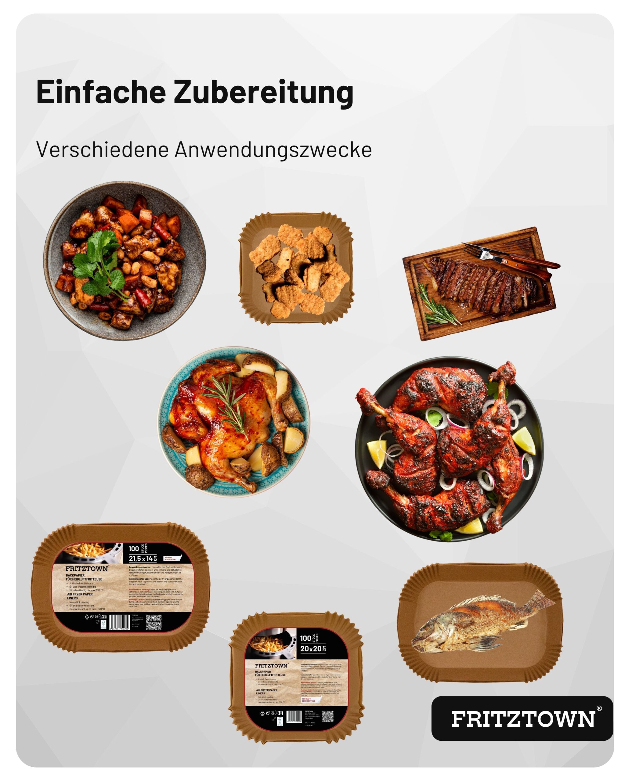 FRITZTOWN® Air Fryer Paper 21,5x14cm Rechteck 300 Stück