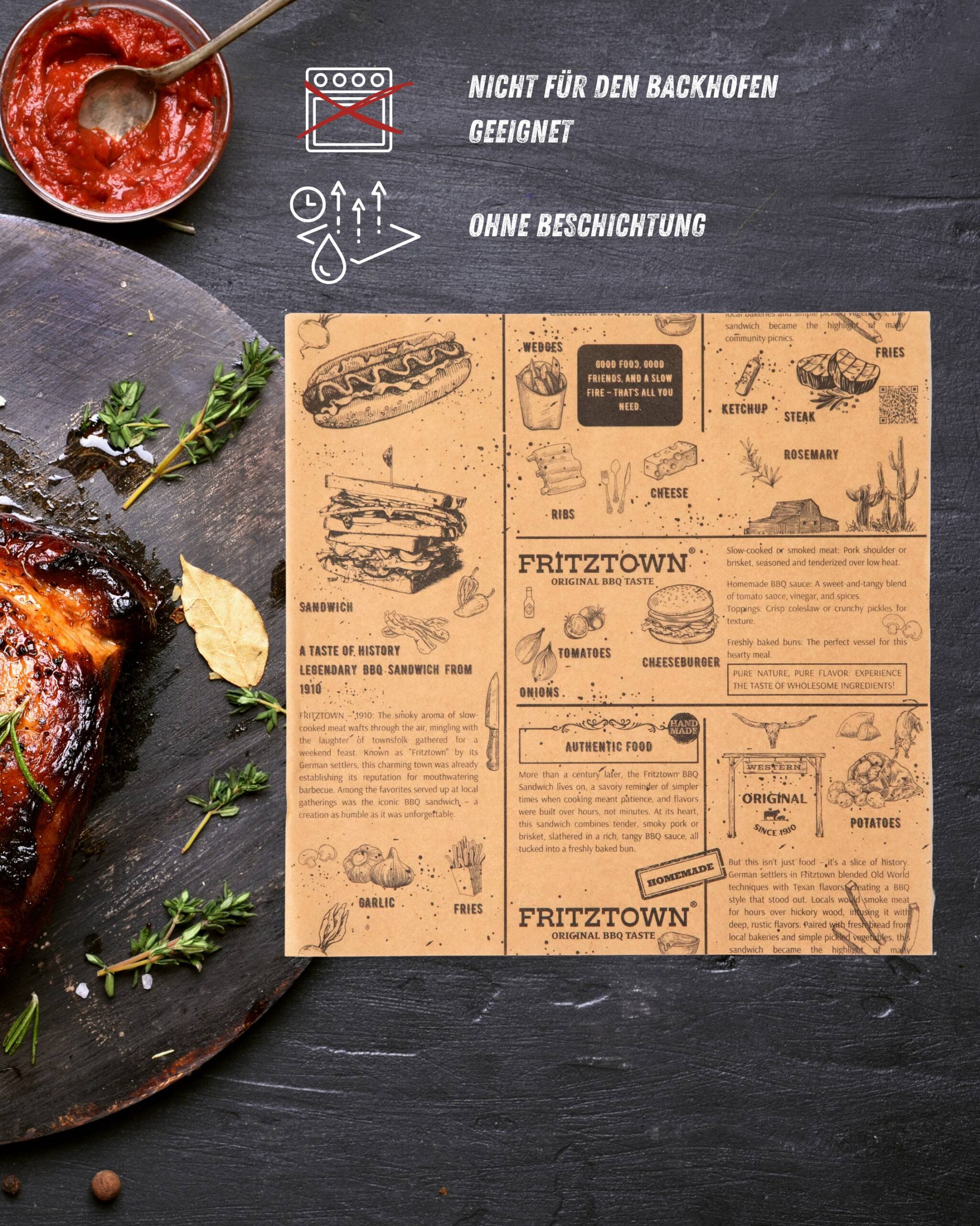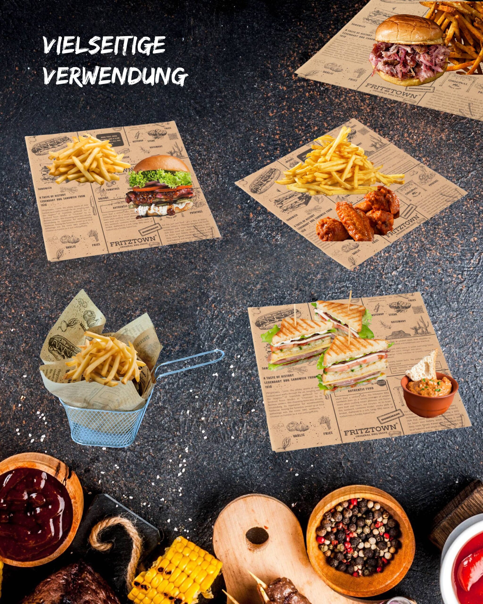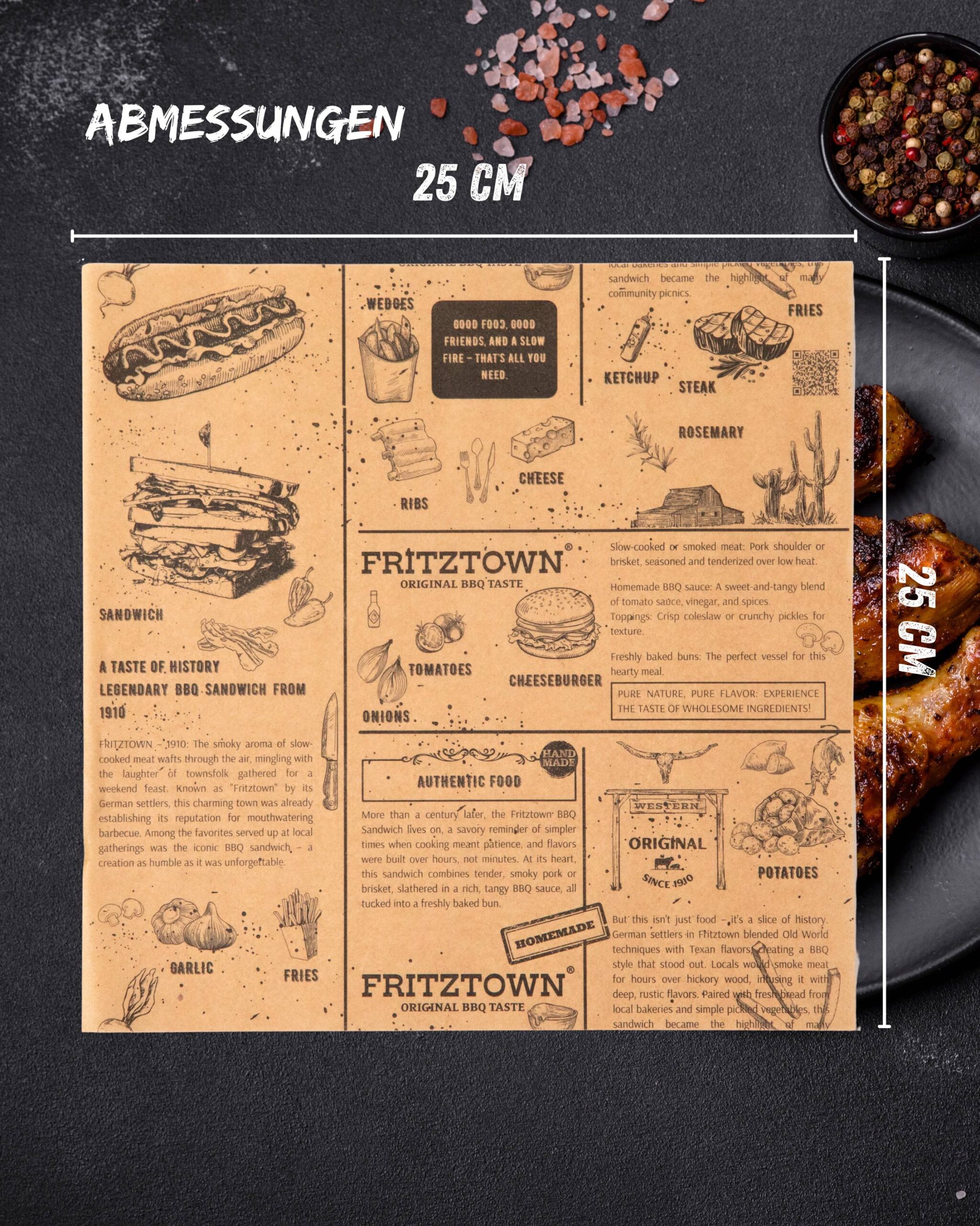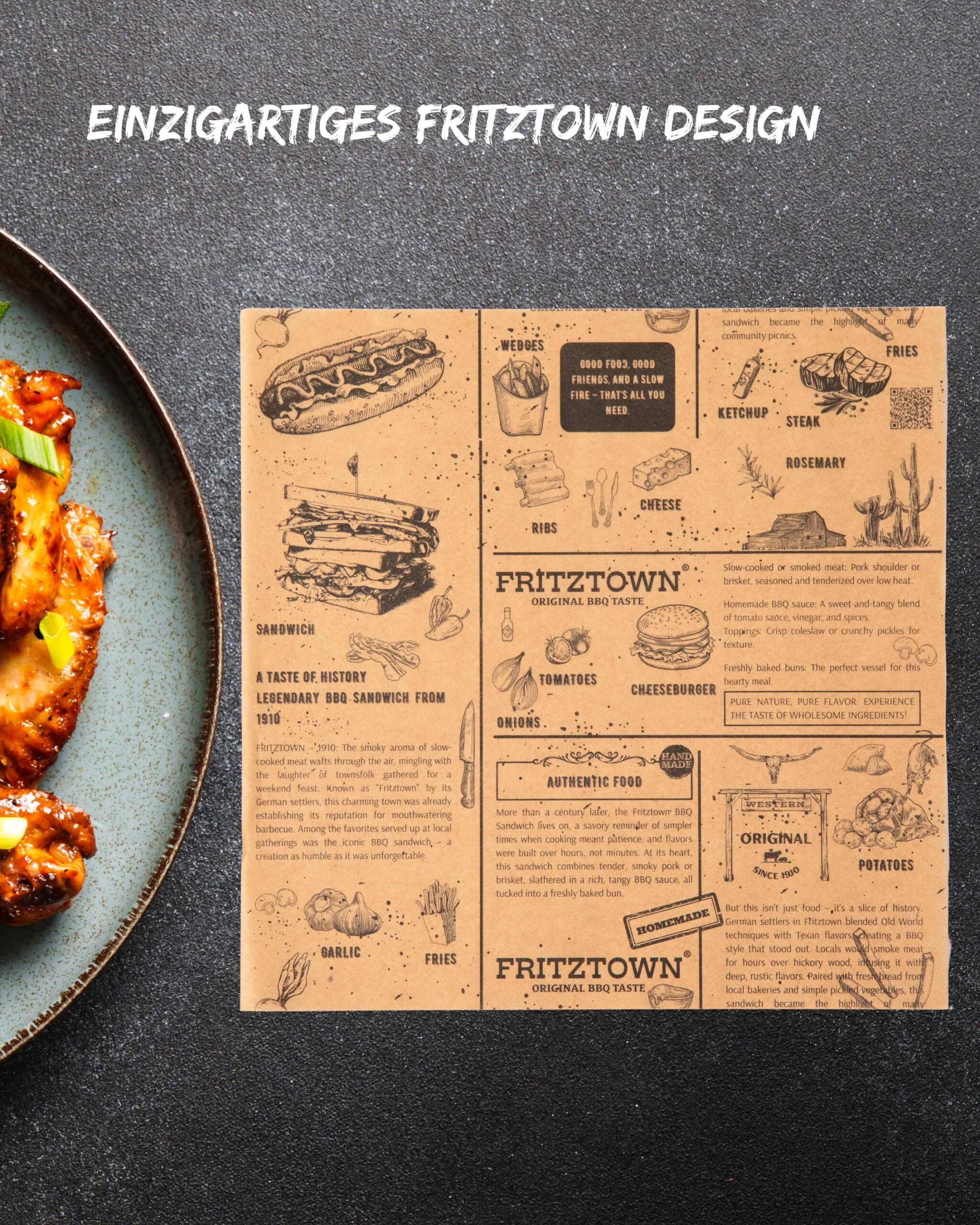 FRITZTOWN® Deli Paper Braun 25×25 cm – 100-7200 Blatt | Unbeschichtetes Einschlagpapier für Burger, Sandwich & BBQ