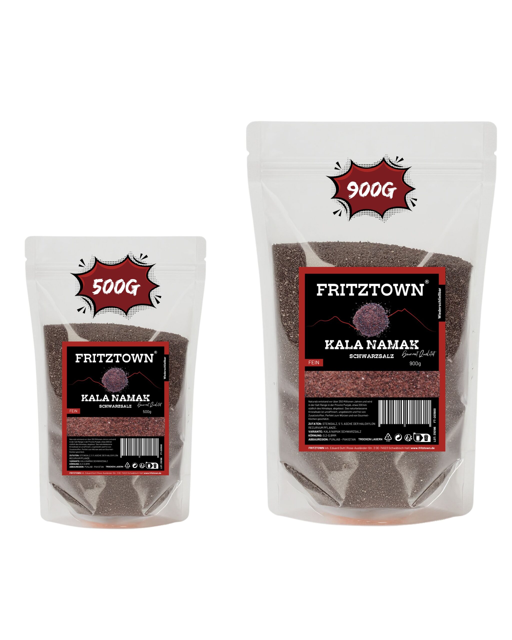 FRITZTOWN® Kristallsalz bekannt als Himalayasalz Black – Kala Namak 0.20 – 0.80 mm fein